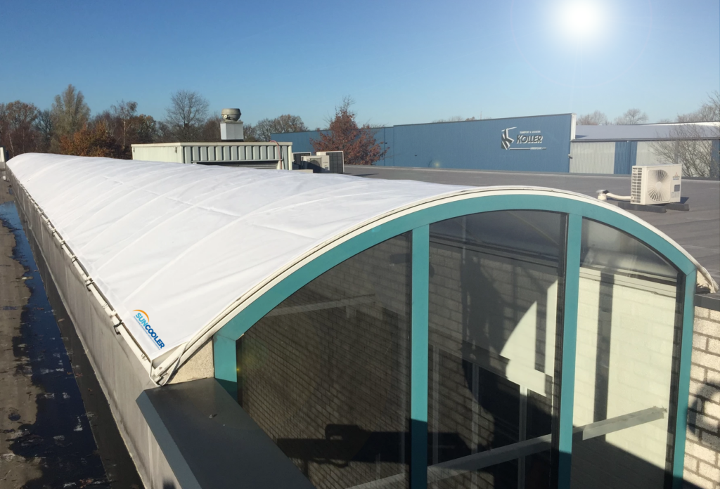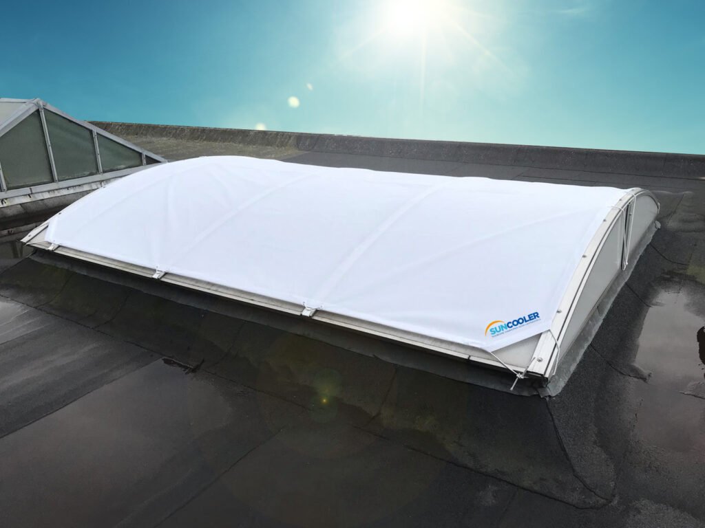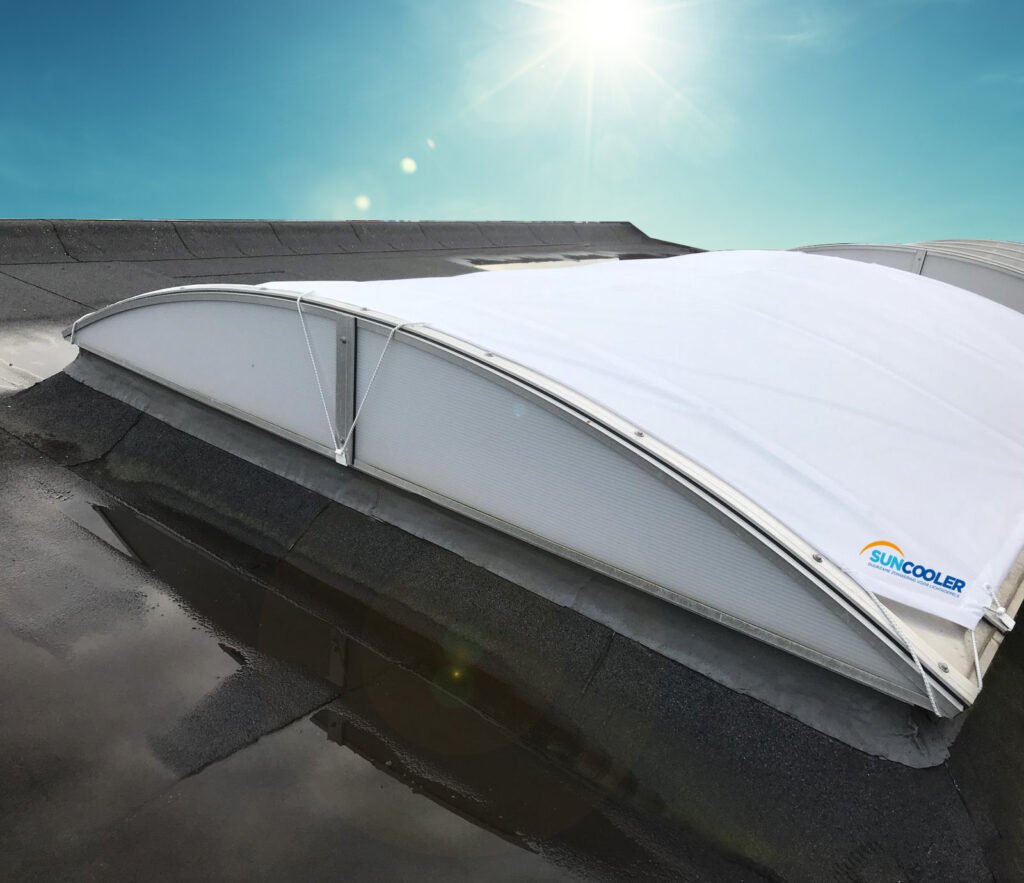 Az alábbi grafikon azt mutatja, hogy a fedetlen tetőablakok, mennyire gyorsan érnek el kritikus hőmérsékleti értékeket. A bal oldali oszlop a hőterhelést ábrázolja - vagyis azt, hogy az emberek, a gépek, és a számítógépek, mennyi hőt adnak le. Mellette a tetőablakok tetőfelülethez viszonyított százalékos aránya látható. Jól kivehető az ábráról, hogy a kritikus értékeket már kis kupola-felület esetén is elérik. A SunCoolerrel viszont garantált, hogy minden érték visszatér a zöld tartományba - mind a hűtés, mind az energiafogyasztás tekintetében.