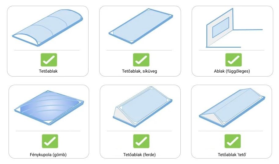 A SunCooler akár ferde, vagy függőleges ablakokhoz is alkalmazható a kiegészítő tapadókorongok segítségével, és közben nyitható marad az ablak. A hő – és füstelvezető kupolák szintén nyithatóak maradnak.